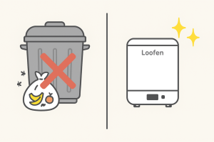 家庭での使いやすさ、におい対策、そしてコバエ防止。この3つを叶えるのが、生ゴミ乾燥機【loofen(ルーフェン)】 の最大の魅力です。