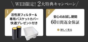✅ 活性炭フィルター&専用バスケットカバーのプレゼント付き